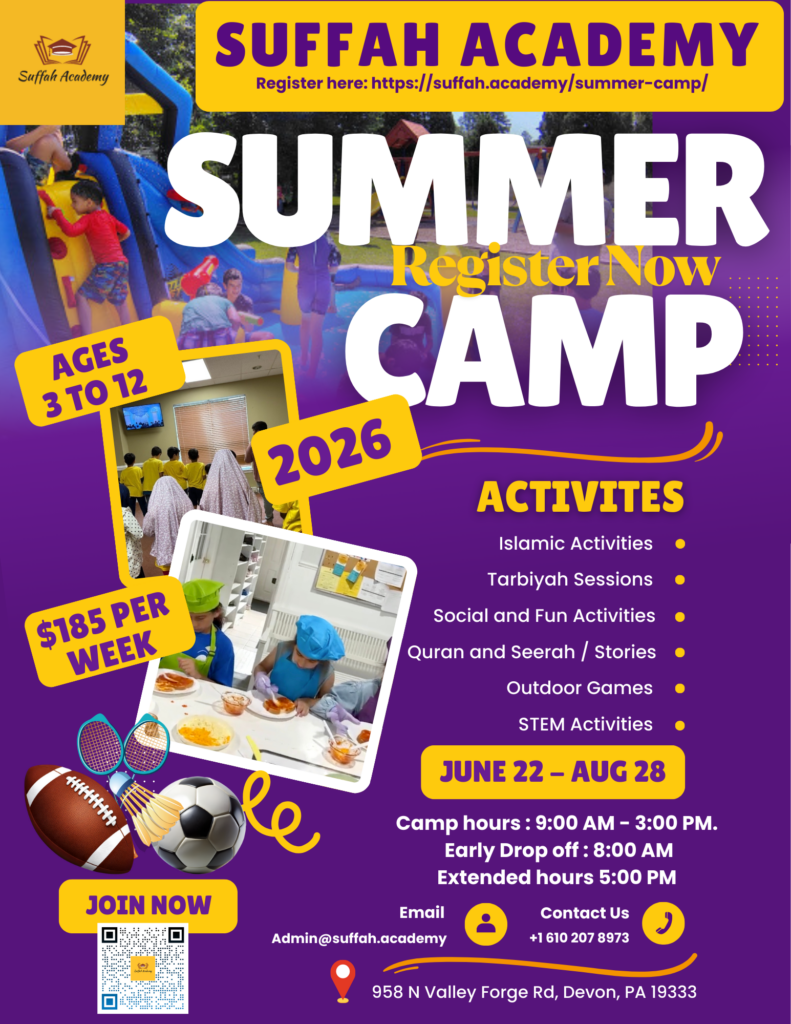 This summer, give your child the gift of growth and inspiration at Suffah Academy’s Summer Camp. Our camp combines exciting activities with the opportunity to nurture Islamic values and build character in a fun, supportive environment.
